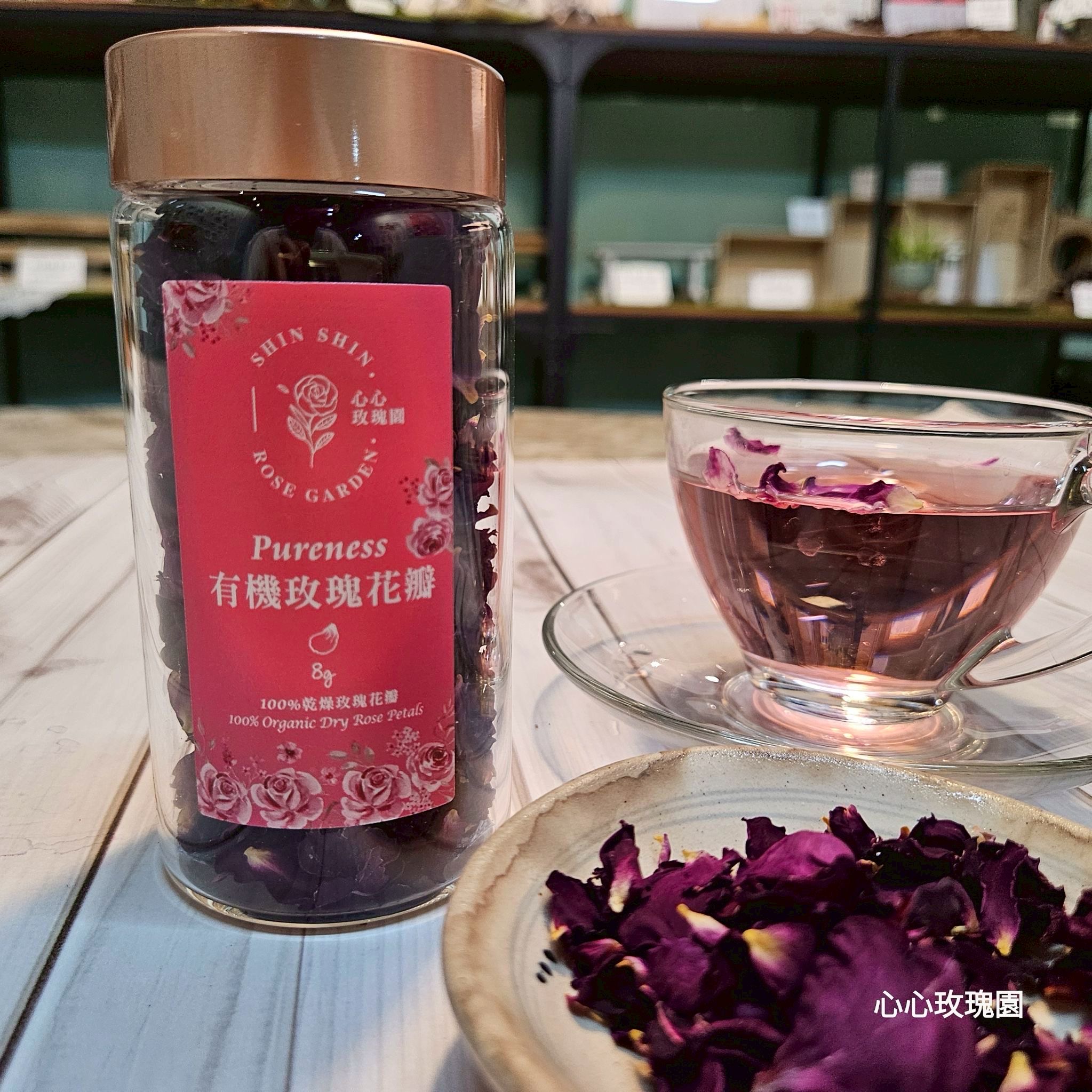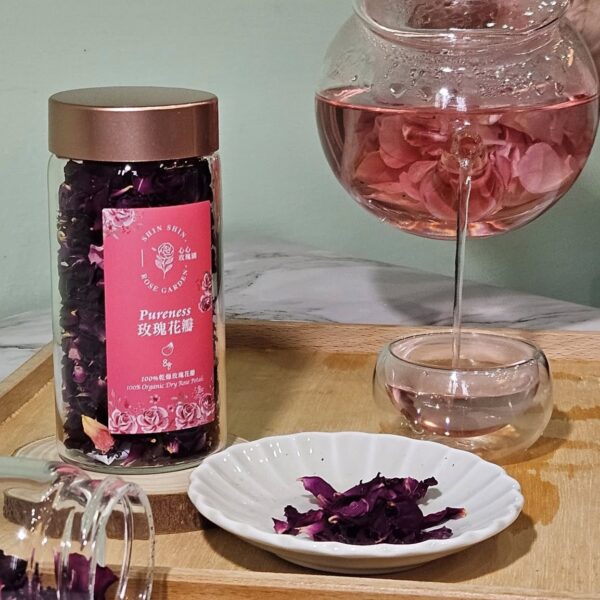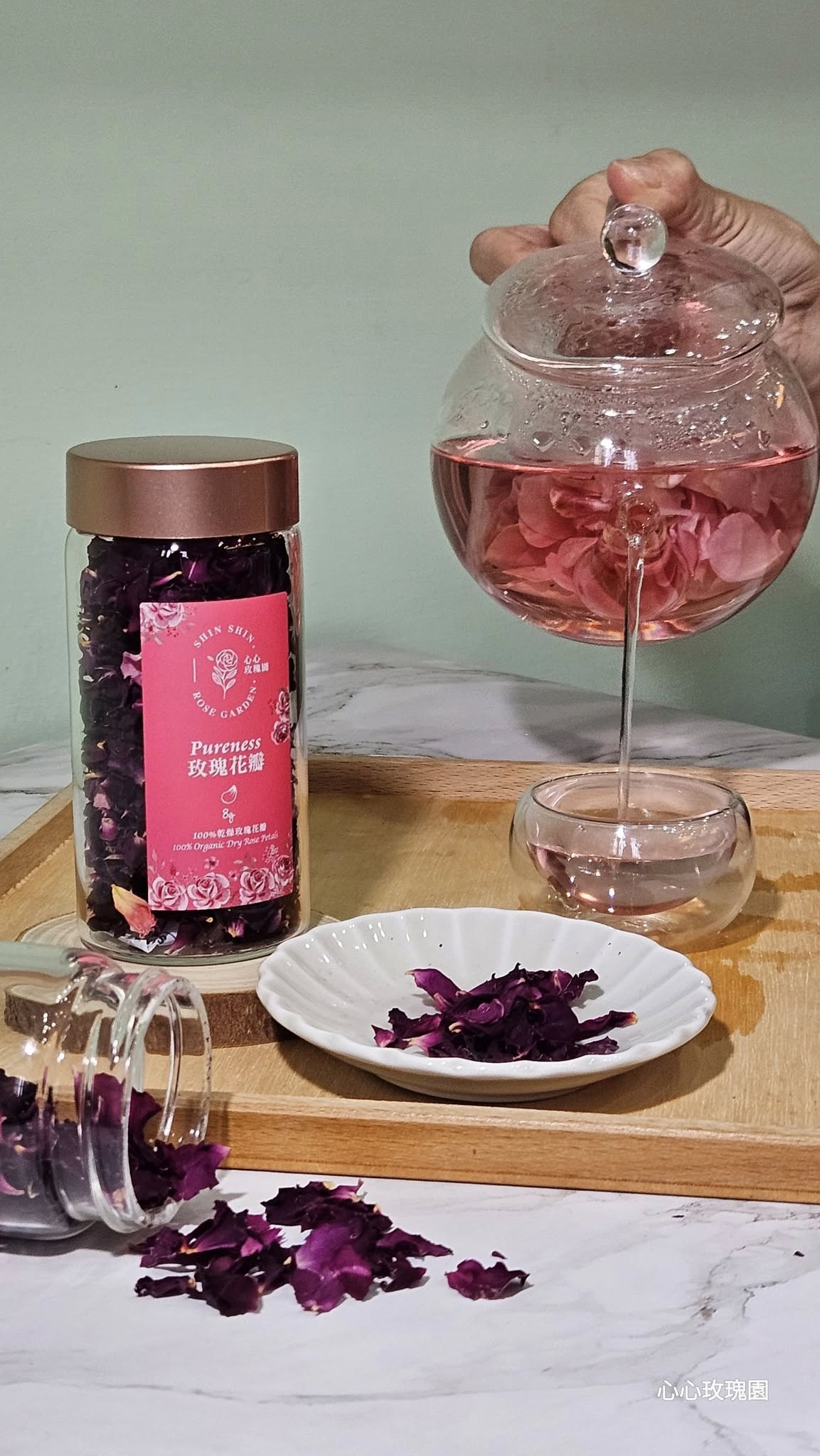 玫瑰花瓣是自「有機心心玫瑰園」農場自產有機玫瑰花,一瓣瓣的撥開挑選。